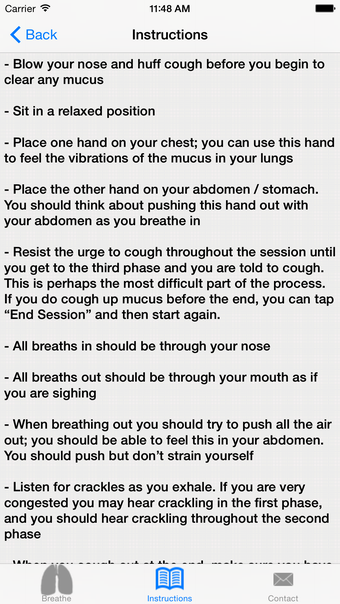 Autogenic Drainage uygulaması, akciğer hastalığı olan bireylerin mukusu temizlemeye yardımcı olan bir nefes egzersizi olan otonom drainajı gerçekleştirmelerine destek olmak için tasarlanmıştır. Uygulama, sesli komutlarla çalışan özelleştirilebilir bir zamanlayıcı sunar ve ekipman gerektirmeden sadece nefes kontrolü ile uygulanır. Kullanıcılar, varsayılan oturumun yanı sıra, her bir nefesin süresi ve sayısı gibi ayarları kişiselleştirerek kendi oturumlarını oluşturabilirler.